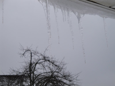Here's the icicles hanging at the side roof of our back porch. I am anxious when the snowing will stop, we still have snow everyday. Yesterday, the sun shine a little bit so those icicles melted but last night, it got so cold again and when I looked this morning, there are some again.